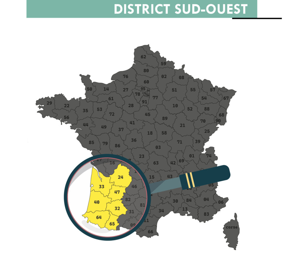 Le district Sud-Ouest fut déclaré au journal officiel le 14 septembre 1990. Son siège social se situait à Villeneuve sur Lot.